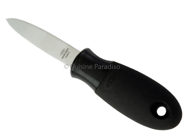 Las hojas cortas y rígidas de estos cuchillos se utilizan para abrir ostras y almejas. Las puntas son contundentes: sólo el cuchillo de la almeja tiene un borde afilado.